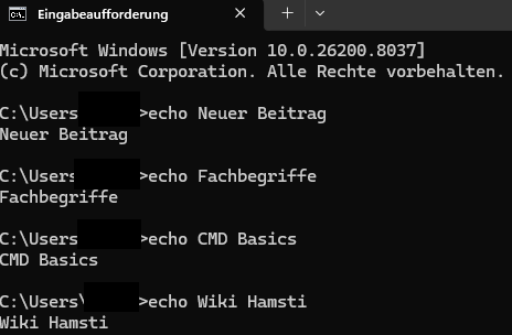 echo Text – Ausgabetitle Name – Fenster-Titelcolor 0A – Grüner Textchcp 65001 – UTF-8cls – Bildschirm löschentasklist – Prozessetaskkill /IM notepad.exe /F – Killsysteminfo – Detailssfc /scannow – Systemcheck
